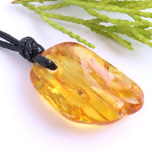 This Baltic Amber Amulet Pendant makes a natural statement. A hand shaped amber gem is hung on a Eco Cotton Wax cord. A lovely warm color, the flat shape rests against the chest at whatever length you like as the cord is adjustable from. It feels wonderfully warm and comforting to wear. Suitable for men or women.
