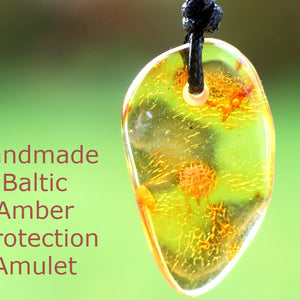 Love, strength, luck and healing properties are all associated with amber, and it has been used for adornment for centuries.  Recently found ancient Viking graves contained amber amulets like this and the ancient Romans frequently wore them as talisman for protection.  The Romans named amber electra after the sun which they felt was contained within.  This Genuine Baltic Amber Unisex Amulet Pendant  will delight.