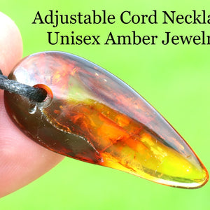 Strung on an adjustable cord, this piece is perfect for men or women seeking a meaningful, earthy accessory with a timeless story. Each pendant is unique — shaped by nature and polished to highlight its rich honey or cognac tones.