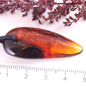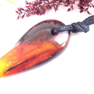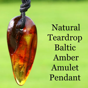 This handmade Baltic amber amulet pendant features a smooth teardrop-shaped gem, lovingly crafted from fossilized tree resin over 40 million years old. Known as a stone of protection and good luck, amber is believed to carry grounding energy and ancient healing properties.