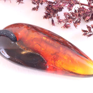 Amber is a stone of ancient forests and prehistoric times. Amber is a warm gemstone and known to help relieve pain and to boost the immune system.  It has a lovely energy. Smooth, light and warm to the touch.