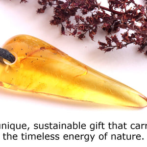 Pendants in the pointed or wand shape are often used for directing energy and intention. This shape channels energy efficiently, making it ideal for meditation, healing practices, and manifestation. This pointed amber pendant can help amplify focus and spiritual growth.