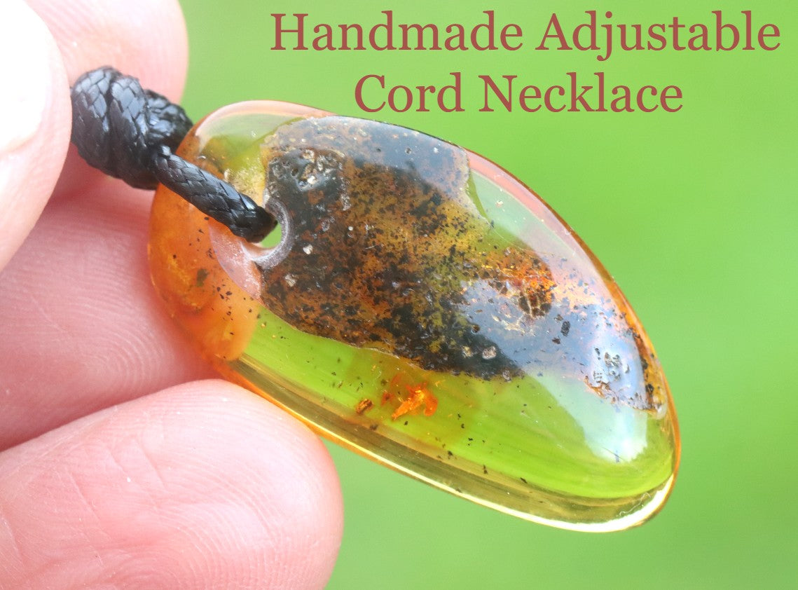 Strung on an adjustable cord, this piece is perfect for men or women seeking a meaningful, earthy accessory with a timeless story. Each pendant is unique — shaped by nature and polished to highlight its rich honey or cognac tones.