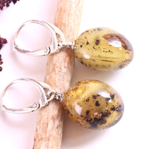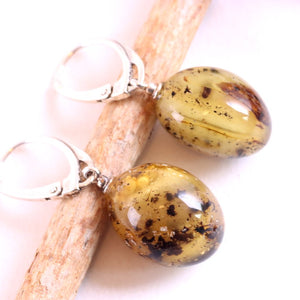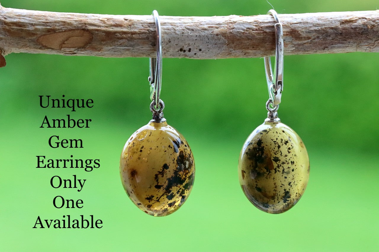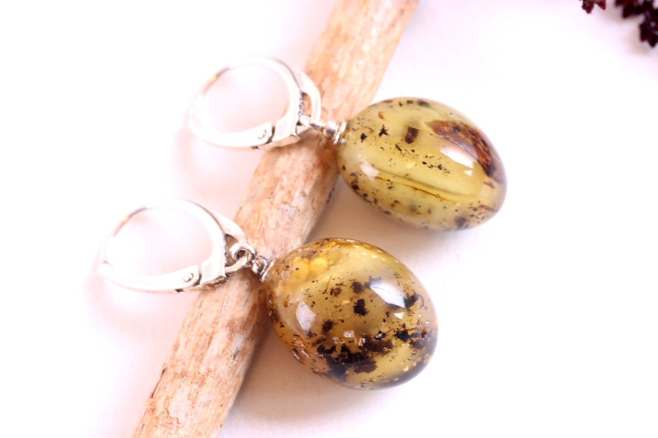 Amber is fossilized tree resin from over 40 million years ago, and green is one of the most sought-after natural amber shades. These earrings are ideal for someone who loves earthy tones, rare gemstones, and refined jewelry.