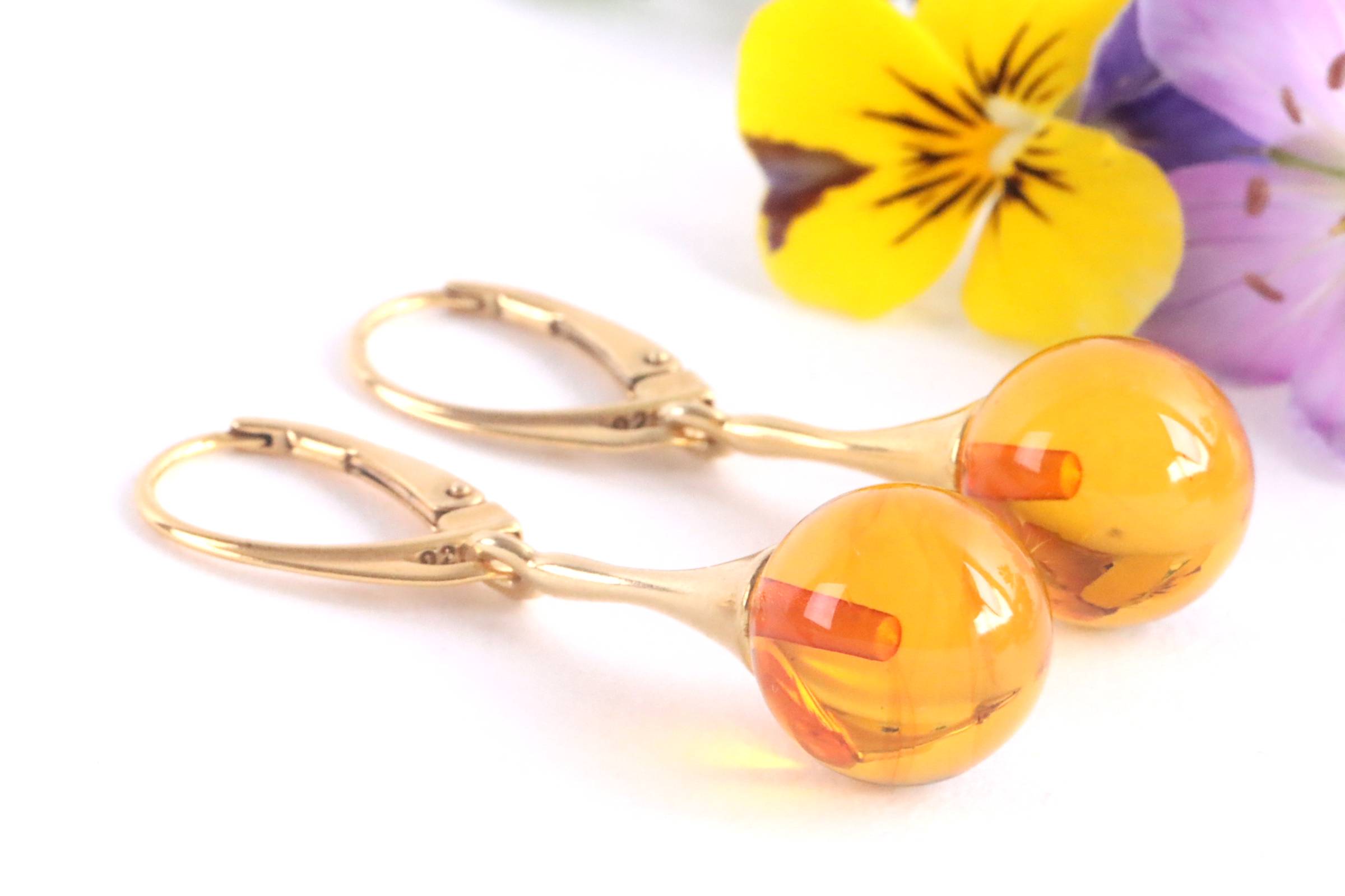 Exquisite selection of Amber Earrings on silver and gold. Earrings featuring amber gems in a variety of colours. Nature and elegance paired for everyday style. Be Natural, Be Beautiful.