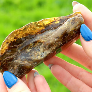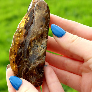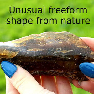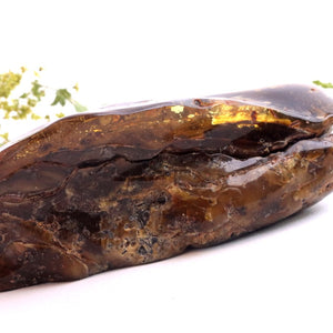 This unique Baltic Amber has a wonderful shape. It is unusual as it is quite dark, like the depths of the forest, in which pieces of the ancient forest have become trapped and preserved forever. Amber is warm and light to hold. It is ideal for use as a meditation stone or for use as a chakra stone or for mindfulness practice. Amber is a stone of ancient forests and prehistoric times.