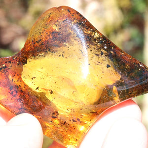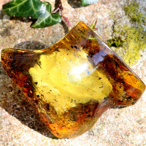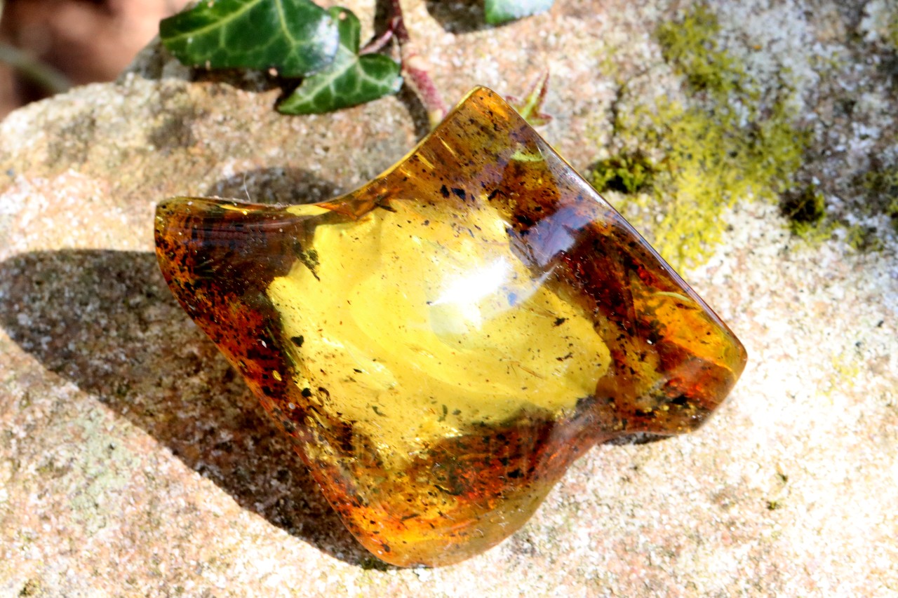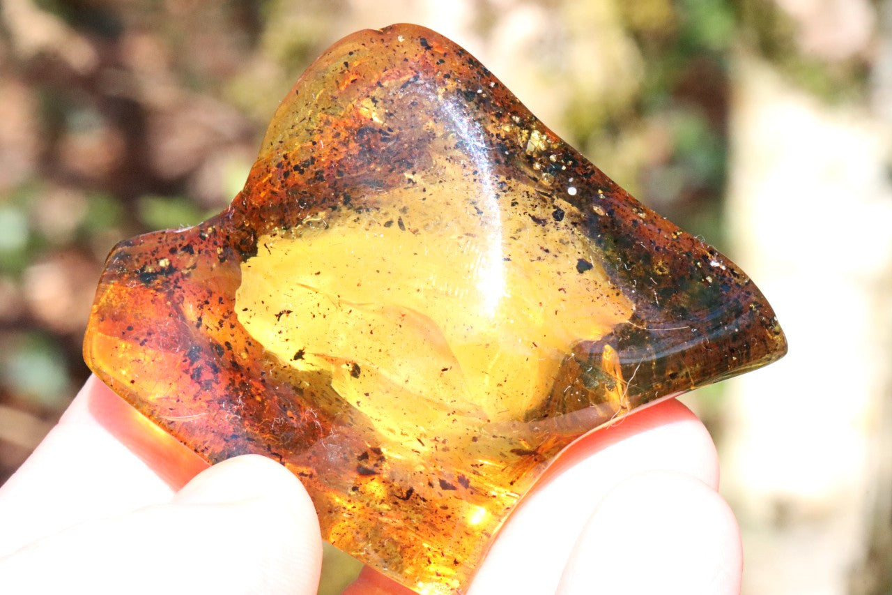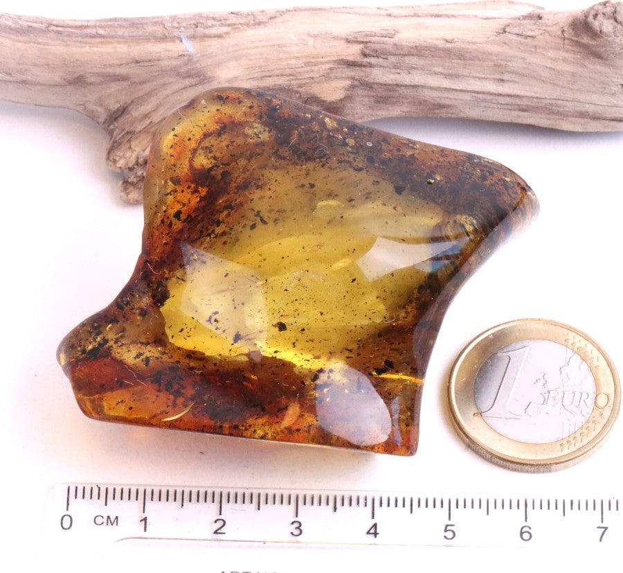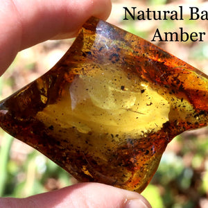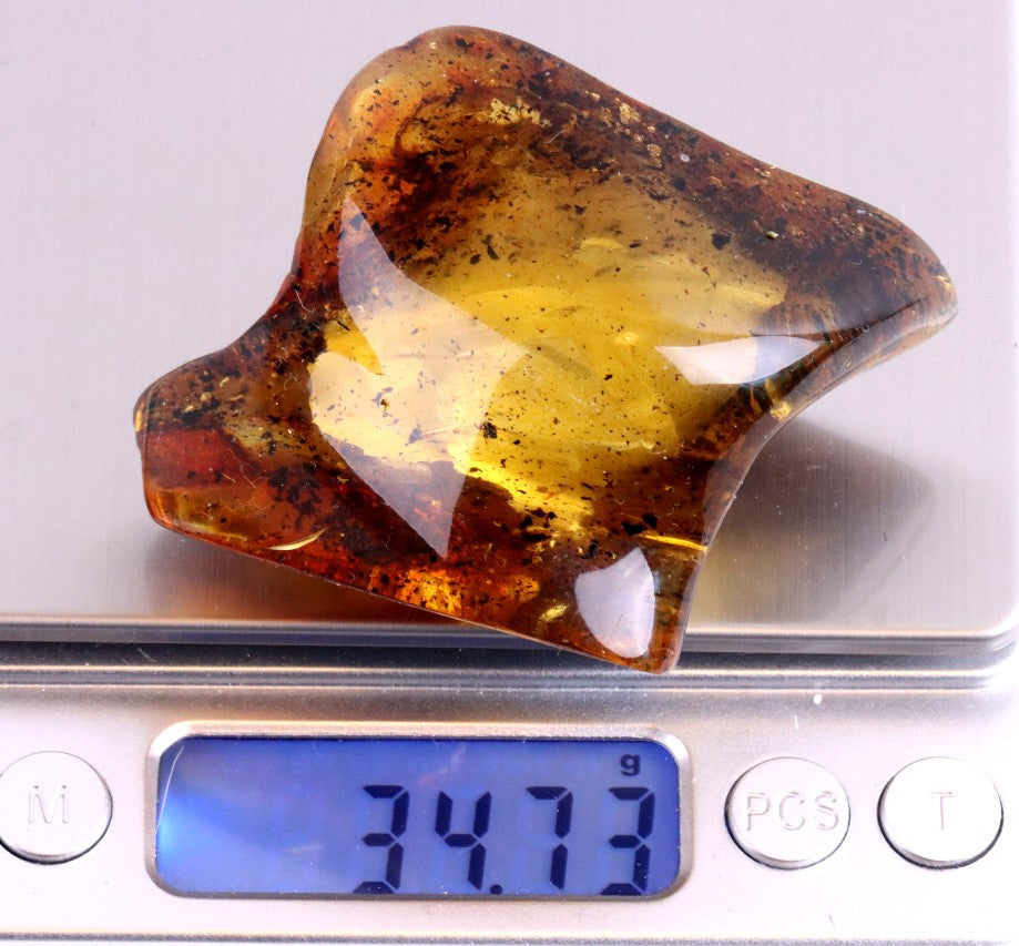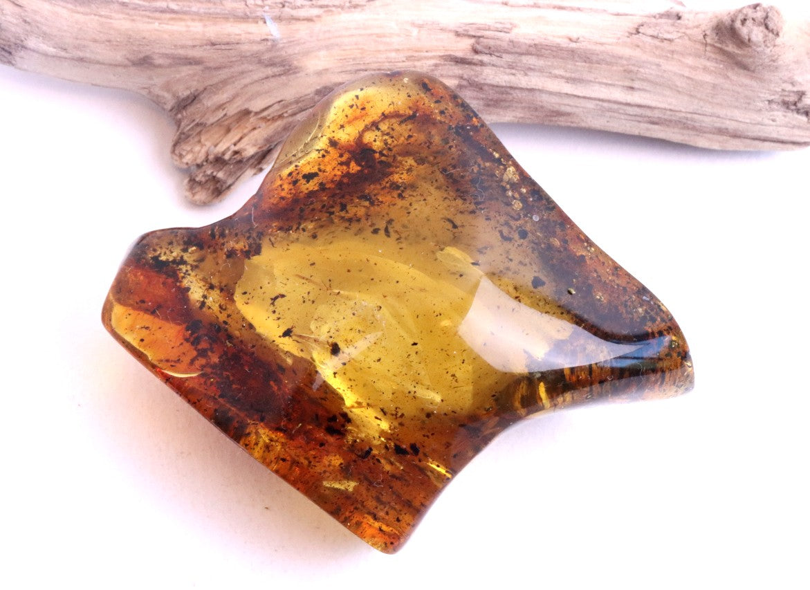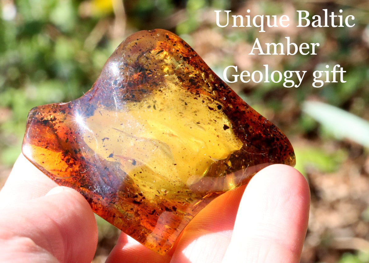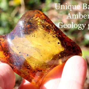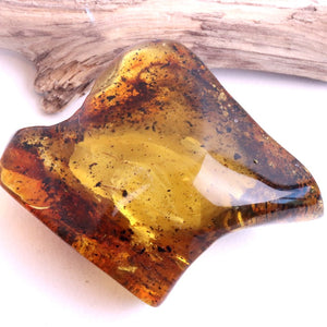 Thinking of Something Unique. This smooth polished Baltic amber gem is ideal.  Unique and real. Look into this piece and let the 40 million year old piece of Amber tell the story.
