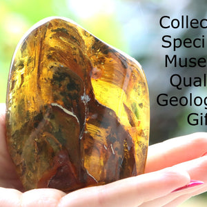 Pieces of this size are rare and highly prized by both collectors and museums. Its natural curves and rich honey tones make it perfect as a geology display piece, a collector’s fossil, or a truly unique gift for lovers of natural history.
