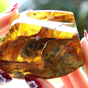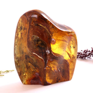 This unique amber stone has a wonderful shape, like the depths of the forest, in which pieces of the ancient forest have become trapped and preserved forever. Amber is warm and light to hold. It is ideal for use as a meditation stone or for use as a chakra stone or for mindfulness practice. Amber is a stone of ancient forests and prehistoric times.