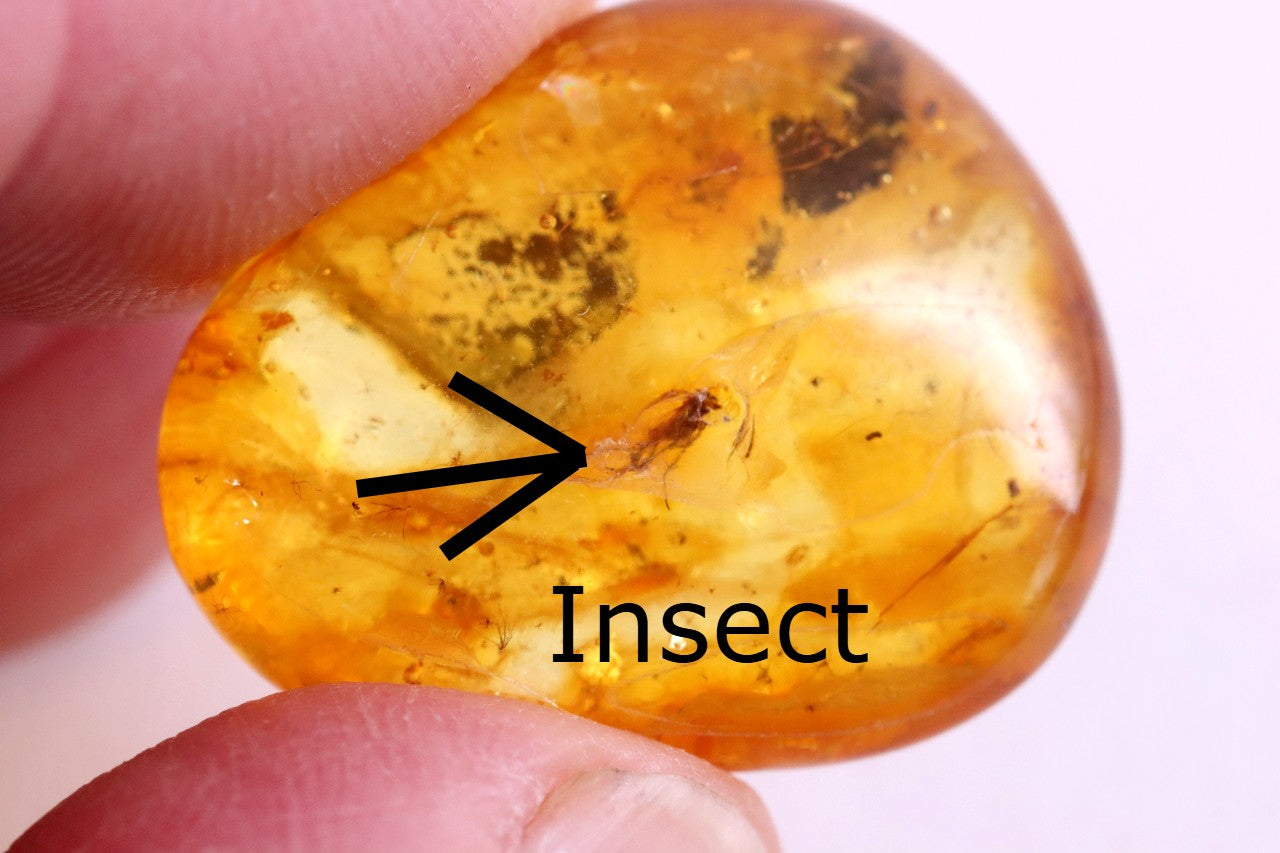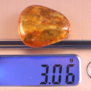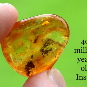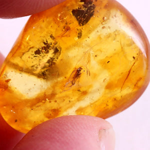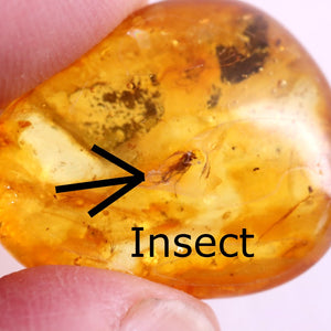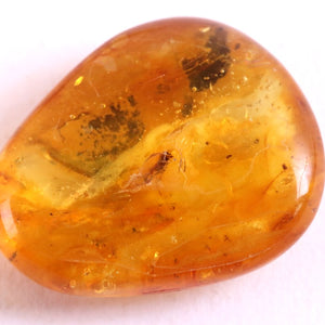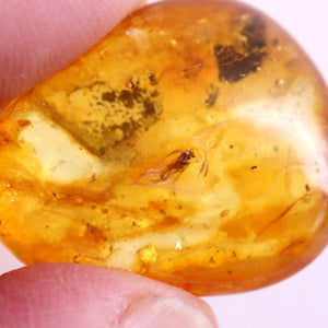 This is a unique amber with fly inclusion. It is like honey in which pieces of the ancient forest have become trapped and preserved forever. Amber is warm and light to hold. With lots of bubbles trapped inside. Amber is a stone of ancient forests and prehistoric times. This is a warm gemstone and lovely to hold.