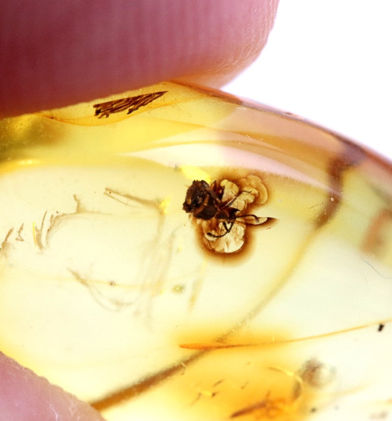 Hold a piece of prehistoric life in your hand—a tiny fossilized world trapped forever in golden amber.