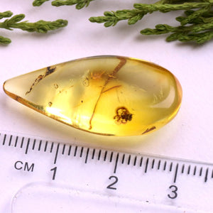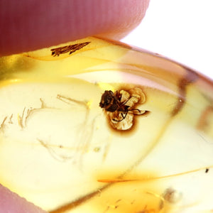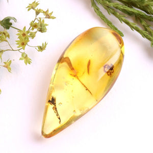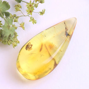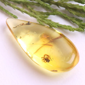 This is a unique amber stone with insect inclusions. It is like honey in which pieces of the ancient forest have become trapped and preserved forever. Amber is warm and light to hold.  With a insect trapped inside. Amber is a stone of ancient forests and prehistoric times.This is a warm gemstone and lovely to hold.