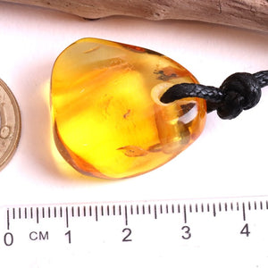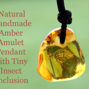 Natural Handmade Amber Amulet Pendant with Tiny Insect Inclusion