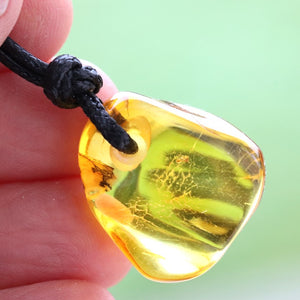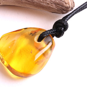 The amber is suspended on an eco-friendly waxed cotton adjustable cord, making it a comfortable and versatile necklace suitable for both men and women. Each amulet is one of a kind, with its own natural inclusions, shape, and character.