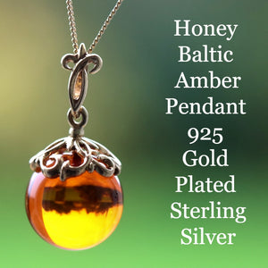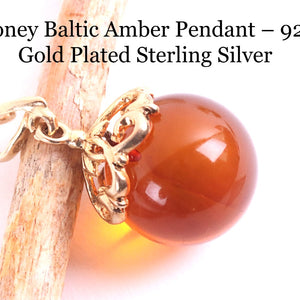 Honey Baltic Amber Pendant – 925 Gold Plated Sterling Silver