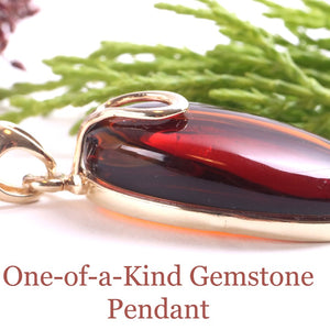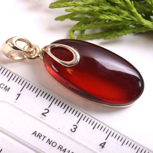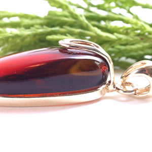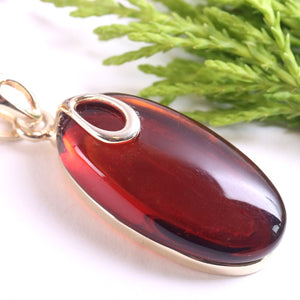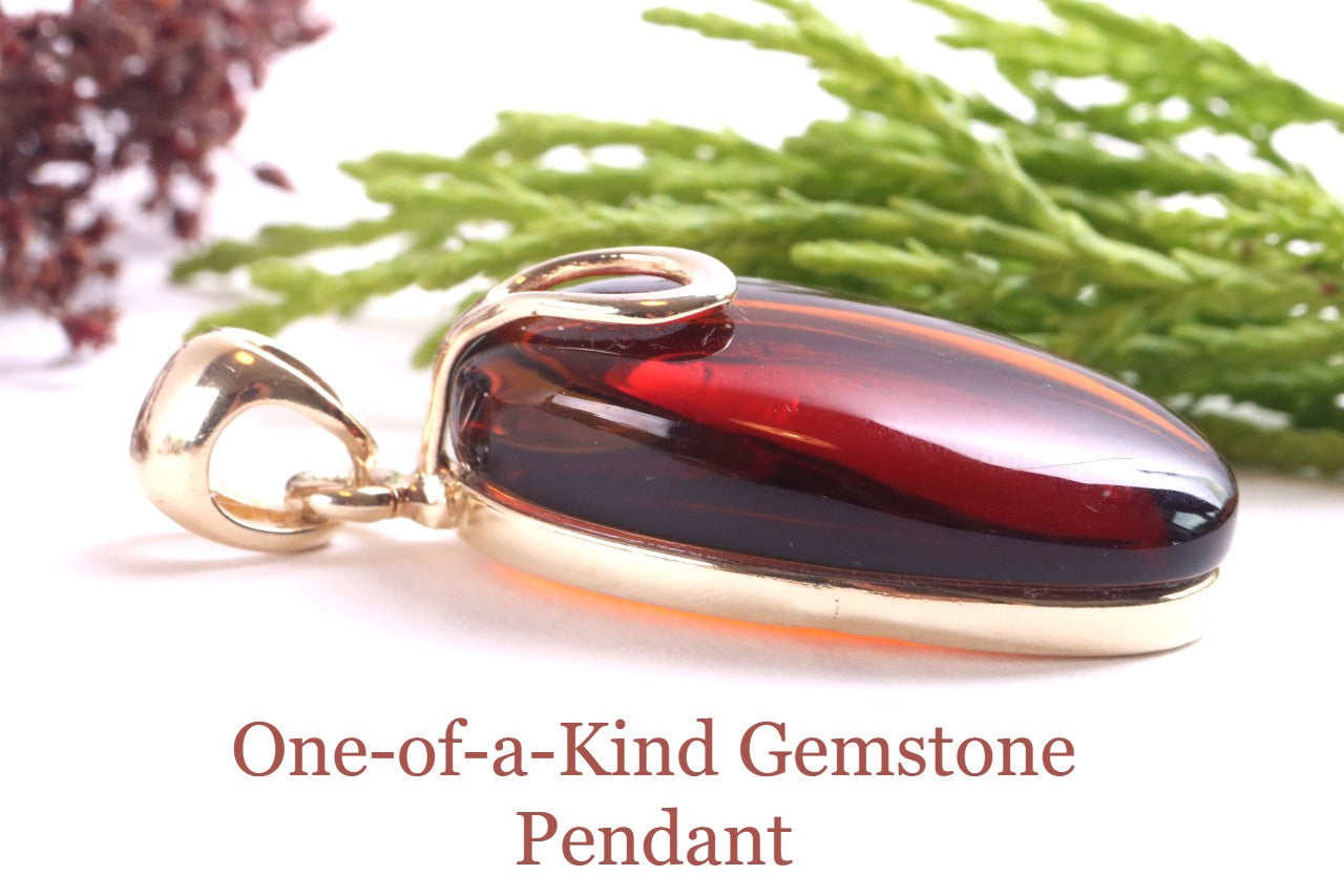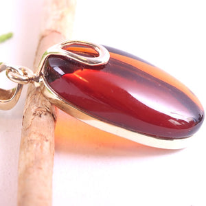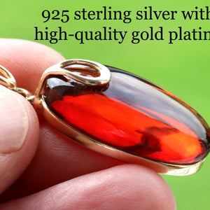 This exclusive Red Amber Pendant is a true one-of-a-kind treasure. Crafted from a single warm red Baltic amber, the gem’s rich red golden glow is perfectly complemented by a 925 sterling silver setting plated in radiant gold. A luxurious and meaningful gift or personal keepsake with lasting appeal. The style of setting pairs well with amber. Amber is often associated with the third eye chakra, which is said to support intuition, clarity, and protection, making this pendant more than just a striking piece of jewelry.