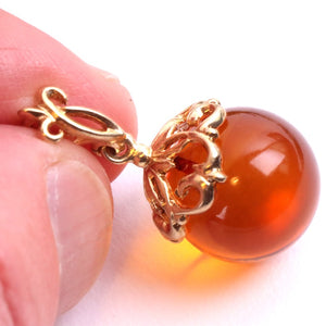 This golden honey Baltic amber pendant glows with warm, radiant energy — a dazzling natural gemstone that reflects light beautifully. Set on a 925 sterling silver bail with rich gold plating, and paired with a matching chain, this piece is a timeless treasure that radiates joy, light, and inner warmth. The globe shape is resonant of the earth itself.