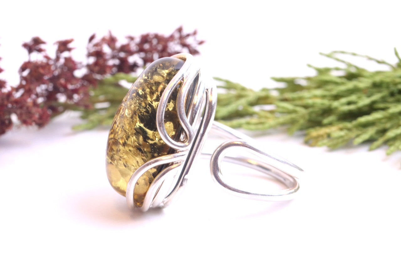 Green amber is alluring, captivating and intriguing. It invites us to peer into the depths within. It connects us to to nature in a special way. Truly, the gems originally may have been more yellow at first and are treated to bring out the 'sun spangles', the sparkles that give it it's light reflective qualities. Any organic inclusions, trapped as the tree resin flowed 40 million years ago, can add to the colours also, So we get 40 shades of Green! Get lost in the depths and simultaneously feel more grounded while wearing your green amber treasure.
