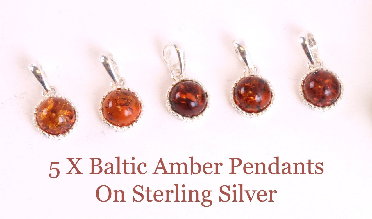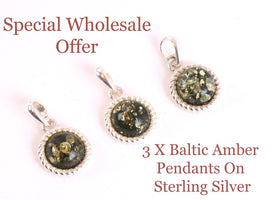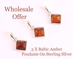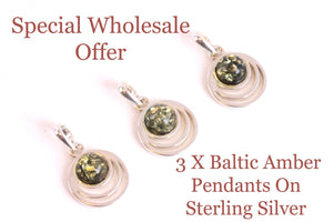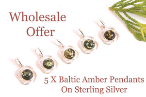 View our selection of sterling silver pendants available at wholesale prices for your store or your jewellery creations.  Contact us if you require chains and our branded eco packaging to display in your store.   We have Loose Amber Beads and Gems also.