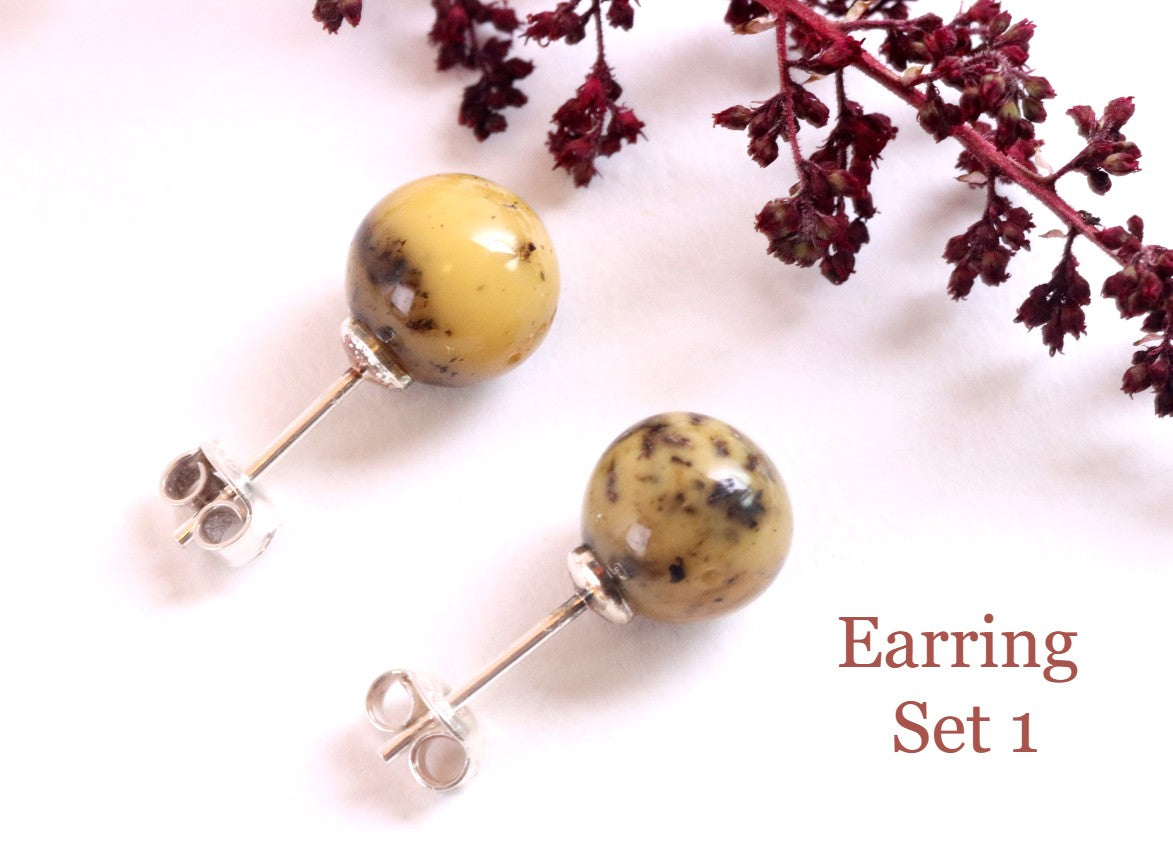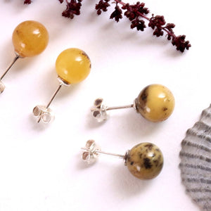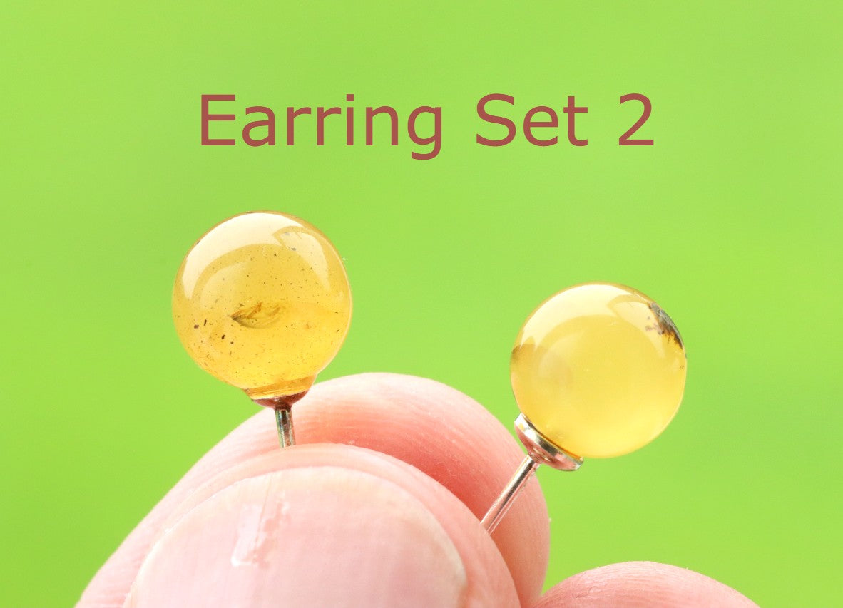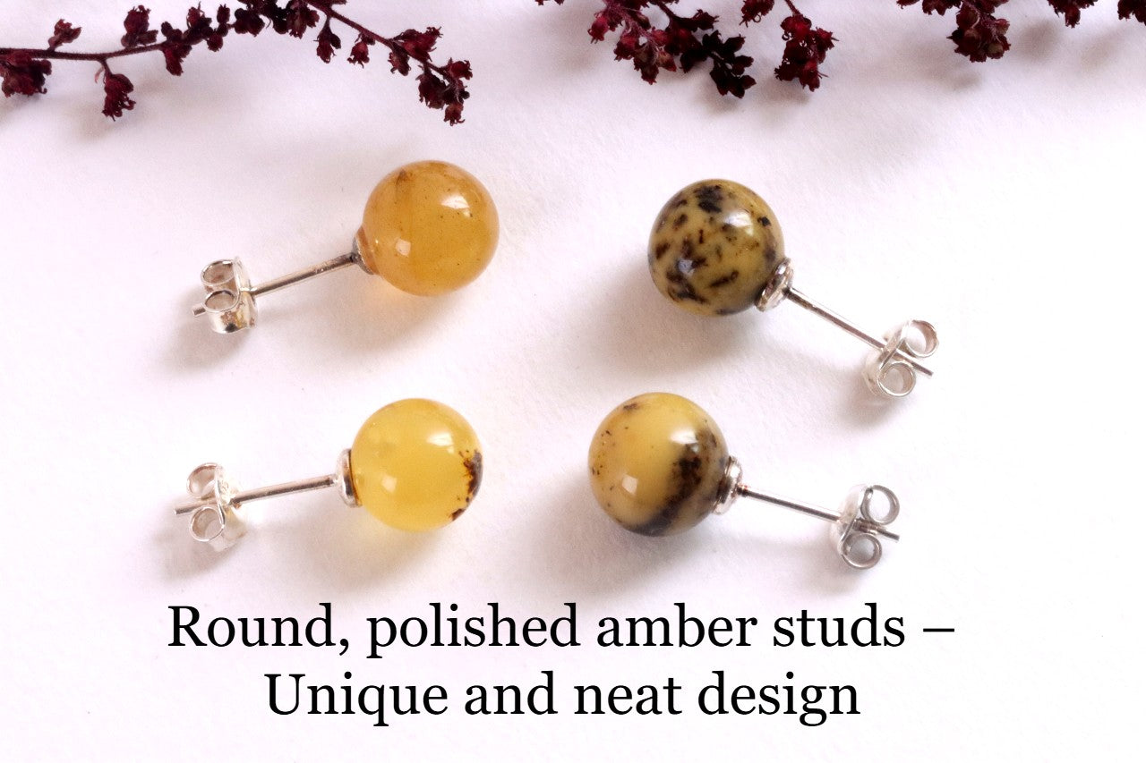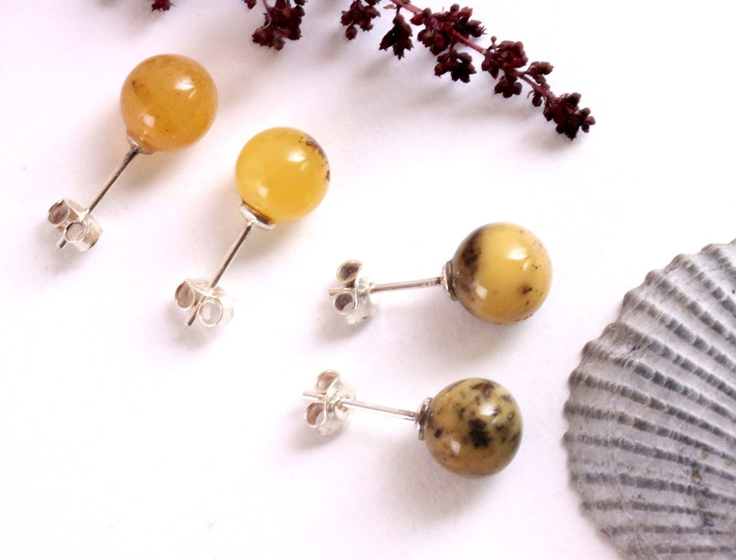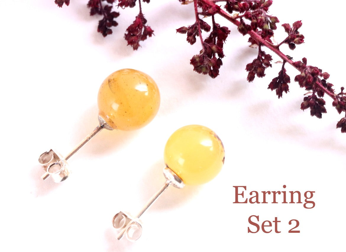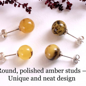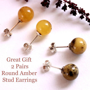 This listing includes two pairs of tidy round Baltic amber stud earrings, each crafted with genuine amber gemstones set on 925 sterling silver posts. A perfect everyday accessory that’s lightweight, natural, and easy to wear.