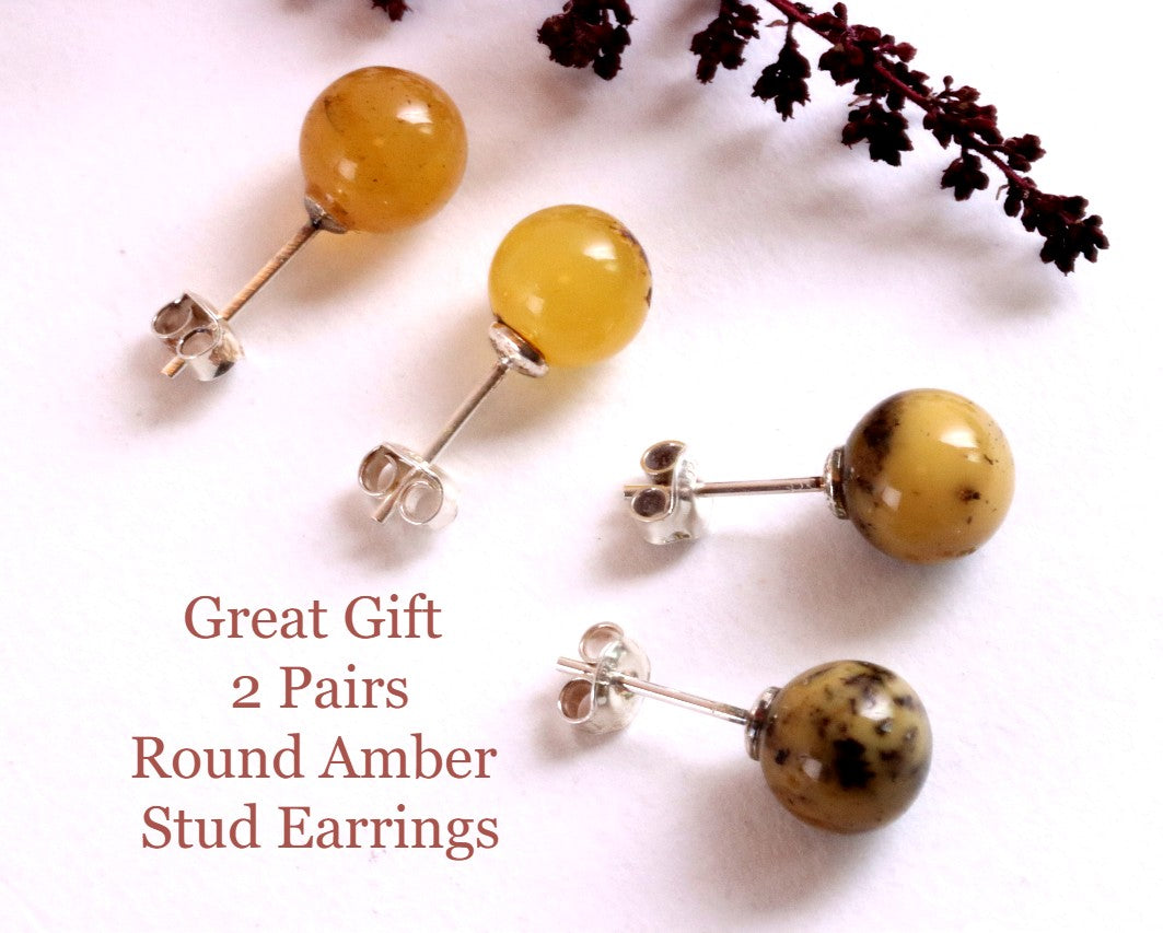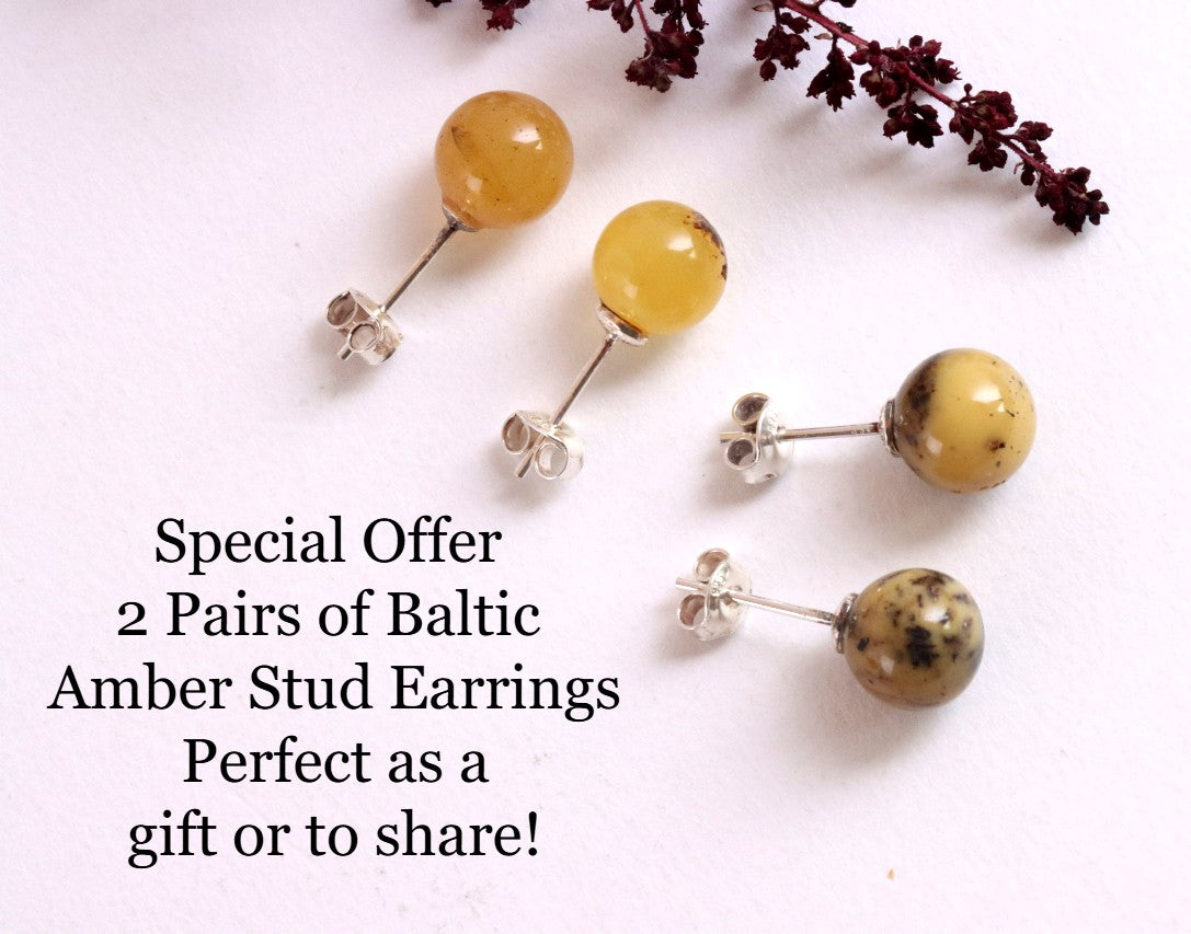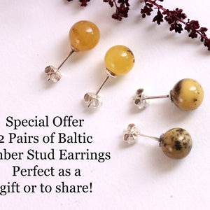 Special Offer – 2 Pairs of Baltic Amber Stud Earrings