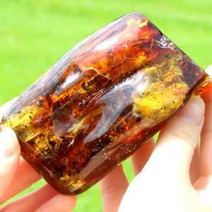 Please note that although these pieces look smooth and polished, it is not in the nature of amber to be perfect. They include layers, lines and spots, specks, dimples, colouration and inclusions, included as the resin flowed from the tree 40 million years ago. These quirks are to be appreciated as natural phenomena, not seen as faults.