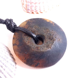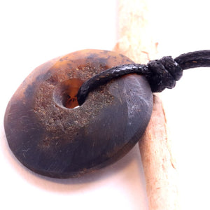Raw Baltic Amber Donut Pendant – Natural Untreated Amber Amulet on Adjustable Cord