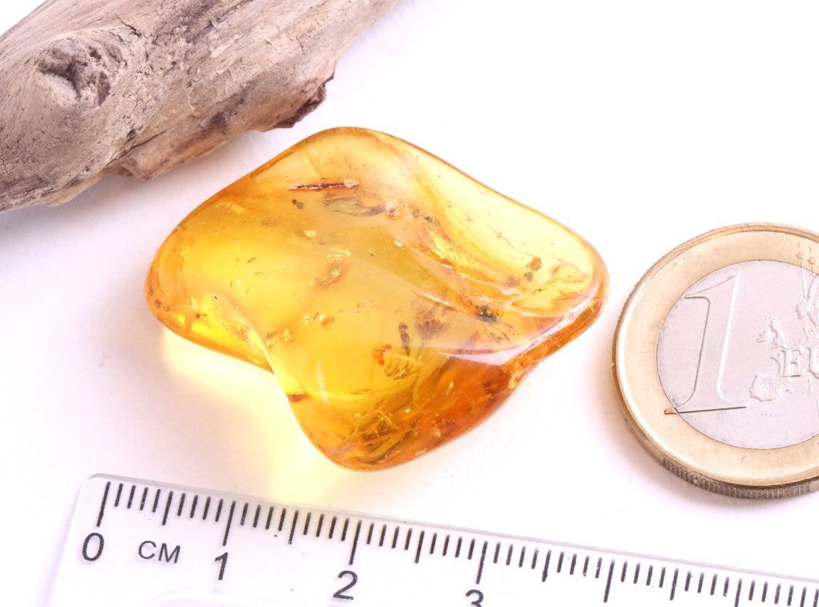 It is like clear honey in which pieces of the ancient forest have become trapped and preserved forever. It is quirky and unique with natural curves. Amber is a stone of ancient forests and prehistoric times. This is a warm gemstone and lovely to hold. A lifetime gift.