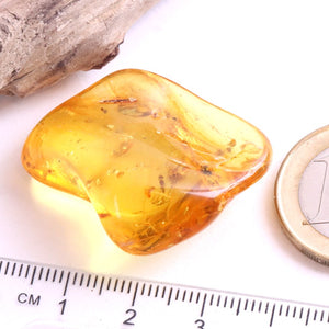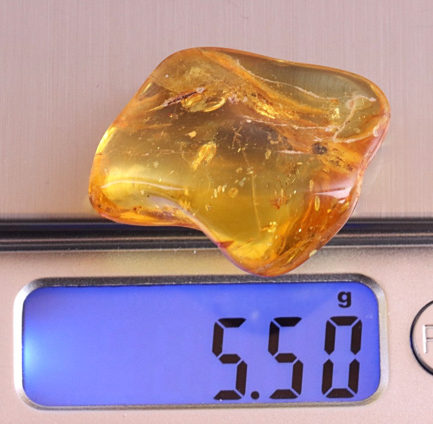 Please note that although these pieces may look clear, it is not in the nature of amber to be perfect. They include lines and spots, specks, coloration and inclusions, included as the resin flowed from the tree 40 million years ago. These quirks are to be appreciated as natural phenomena, not seen as faults. Amber is totally unlike mineral crystals in feel and appearance.