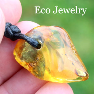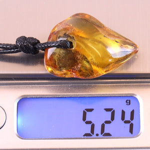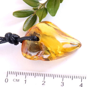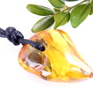 This Baltic Amber Amulet Pendant is crafted from genuine natural amber, featuring a beautiful warm hue. The hand-shaped gem rests smoothly against the chest, radiating warmth and comfort with every wear.