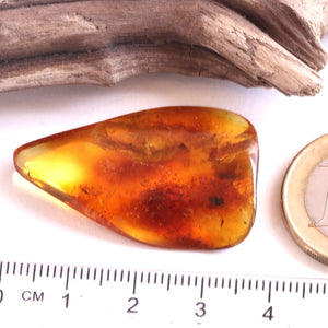 This genuine Baltic amber gem contains a clearly visible insect inclusion, perfectly preserved from the Eocene period. Formed from fossilized tree resin, this ancient piece offers a fascinating glimpse into life on Earth during prehistoric times.