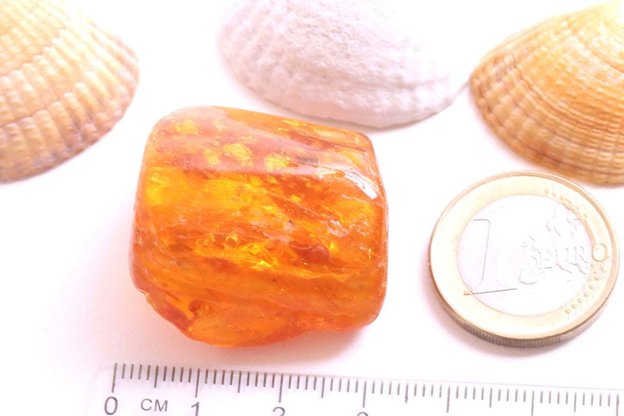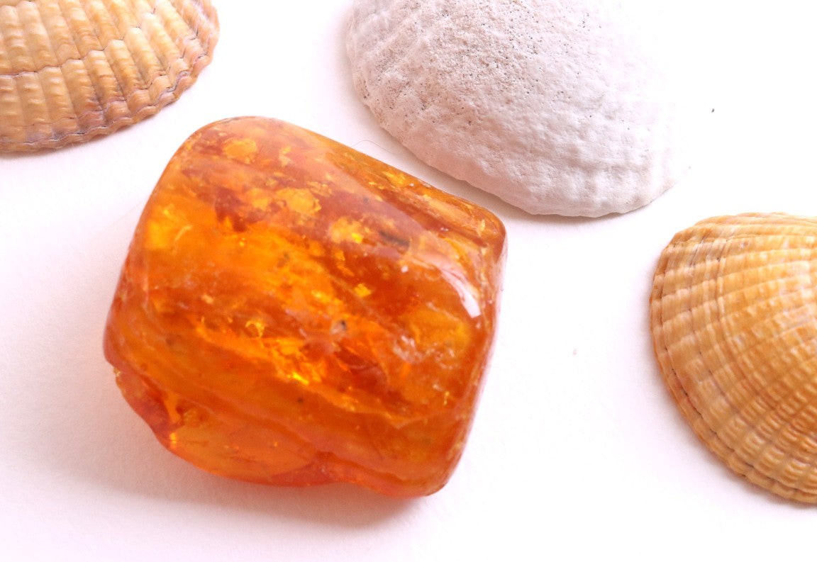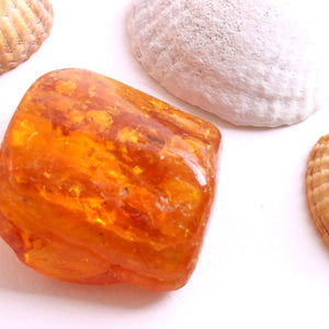 Please note that although these pieces may look clear, it is not in the nature of amber to be perfect. They include lines and spots, specks, coloration and inclusions, included as the resin flowed from the tree 40 million years ago. These quirks are to be appreciated as natural phenomena, not seen as faults. Amber is totally unlike mineral crystals in feel and appearance.