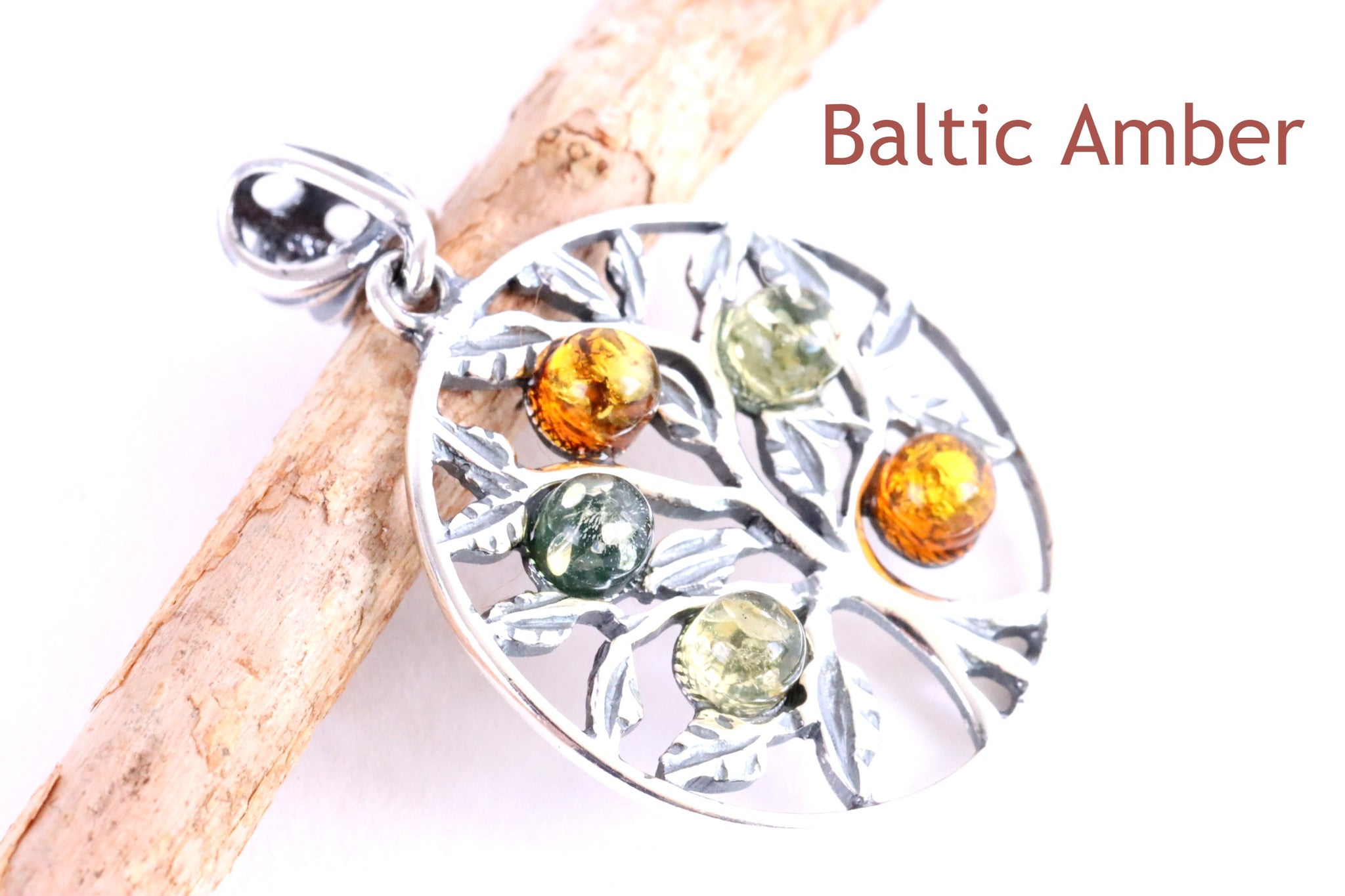 Tree of Life Pendant | Sterling Silver & Multi-Color Baltic Amber