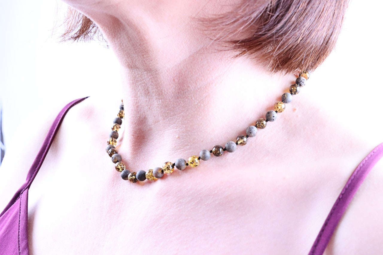 The matte finish beads are sand polished and retain a natural look. A natural necklace, ideal as a healing necklace. All our amber jewelry is made from Baltic amber beads, hand-picked on our travels to the Baltic Sea. Baltic amber beads are well known for wellness.