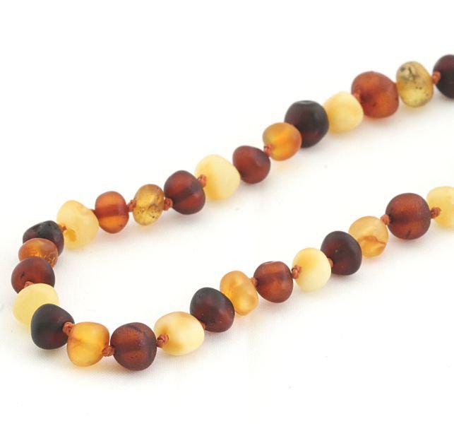 This Amber Necklace features mixed color round amber beads. A classic amber bead necklace. They are sand polished beads, which means they are not polished to a high sheen and retain a matt look. A natural necklace, ideal as an everyday necklace.