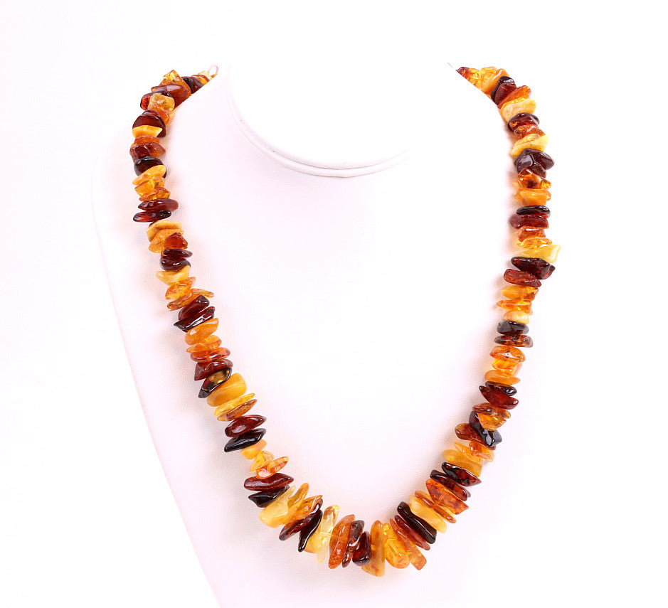 A quality Amber Bead Necklace, in a natural style, this necklace will feel weightless when worn. Made using the traditional mix of Amber colors. Natural amber beads for wellness, simply polished.