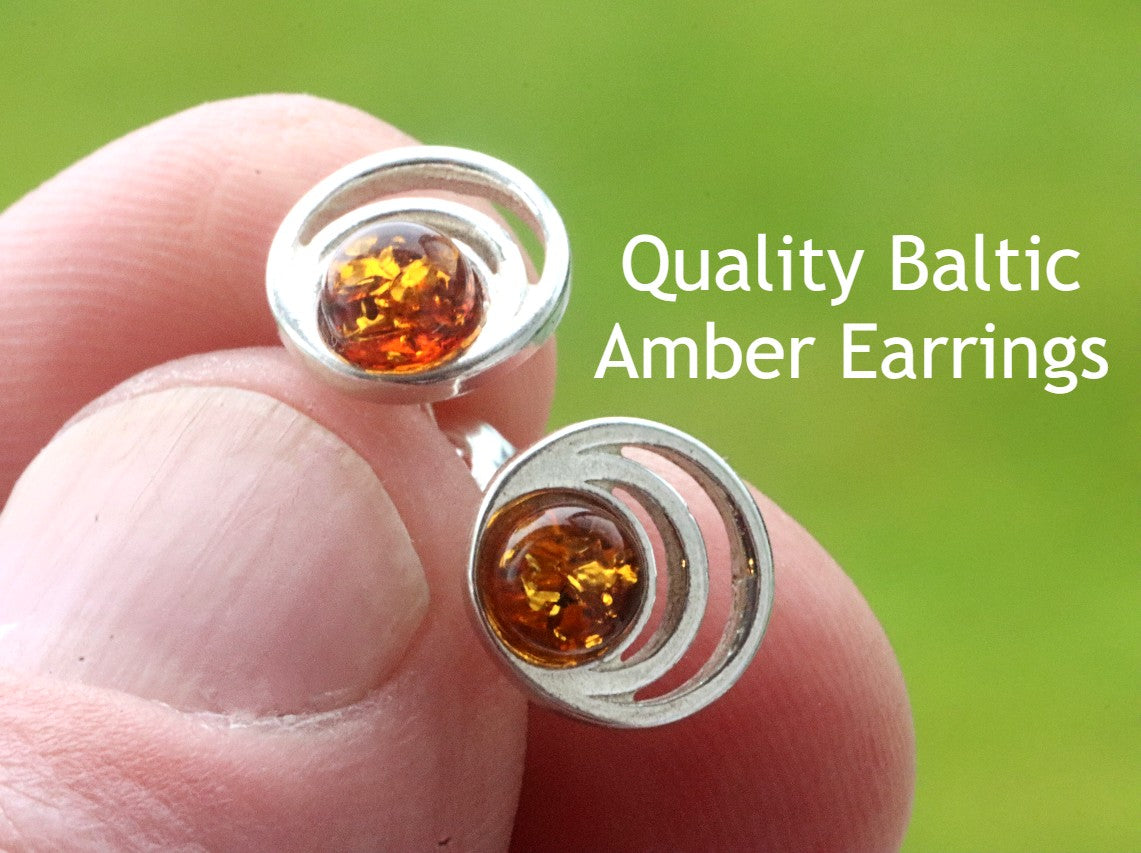 Tidy, dainty studs. Round Shape Amber Earrings to delight! Light Amber color amber gems set on a Sterling Silver Stud back earpiece. Quality 925 Sterling Silver Baltic amber jewelry. Classic and delightful stud earrings in a warm and natural color. The gems catch and reflect the light beautifully.