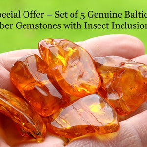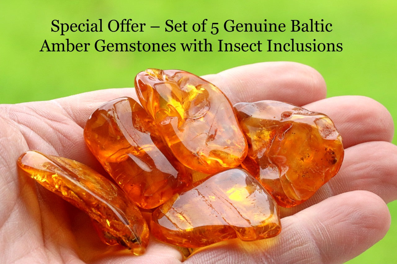 Special Offer – Set of 5 Genuine Baltic Amber Gems with Insect Inclusions