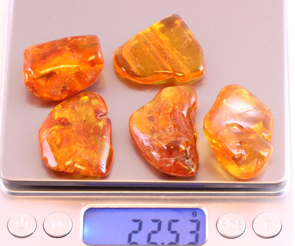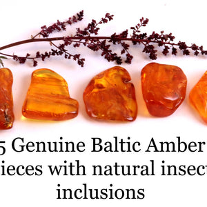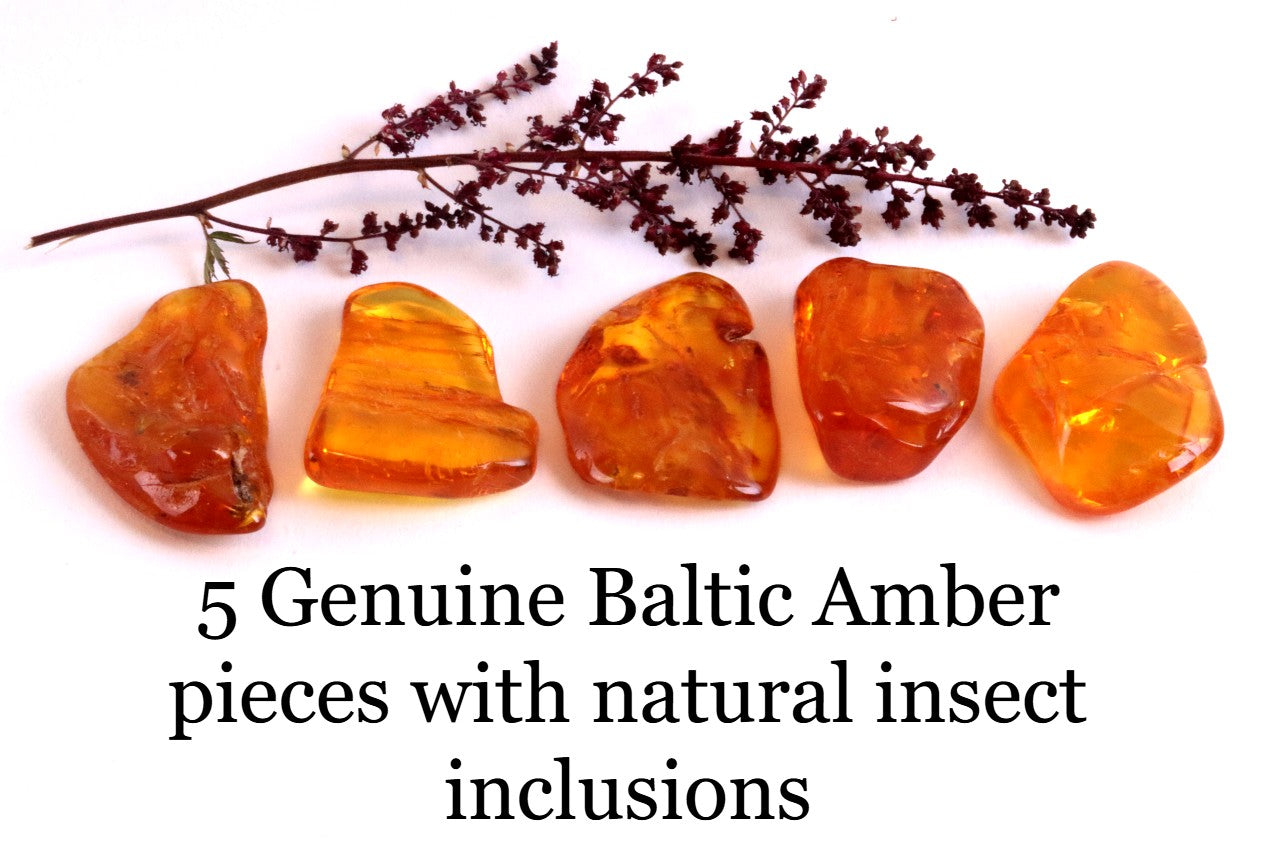 5 Genuine Baltic Amber pieces with natural insect inclusions