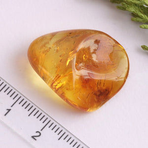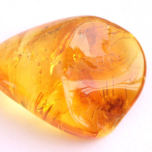 This unique amber Tumble stone has a wonderful shape. It is like clear honey in which pieces of the ancient forest have become trapped and preserved forever. It is quirky and unique with natural curves. Amber is a stone of ancient forests and prehistoric times. This is a warm gemstone and lovely to hold.