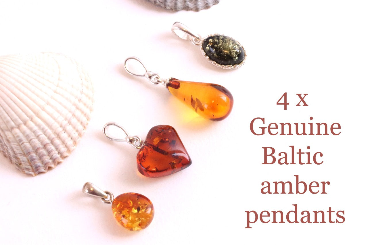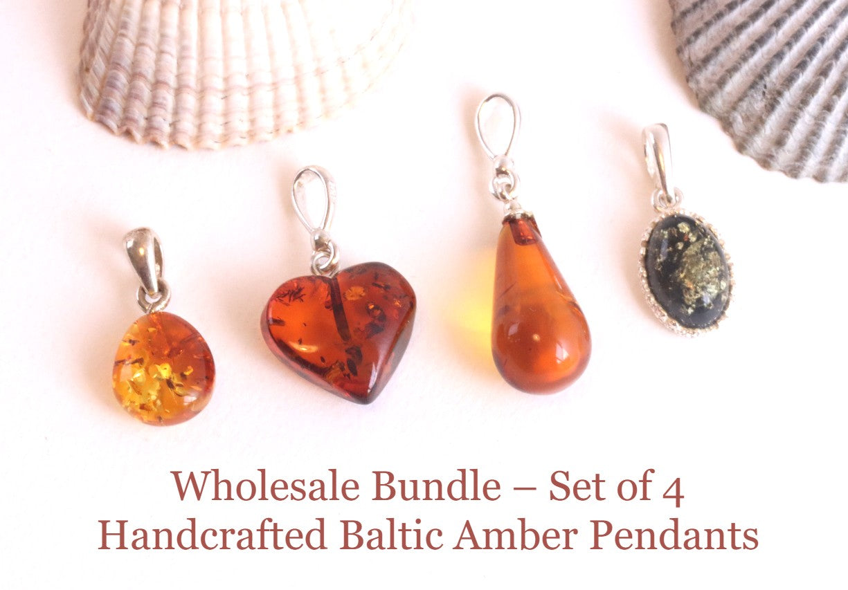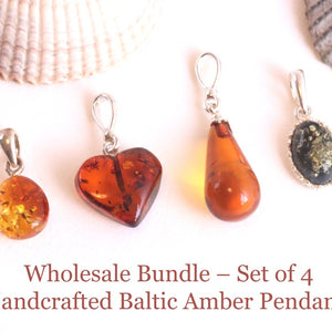 Wholesale Bundle – Set of 4 Handcrafted Baltic Amber Pendants