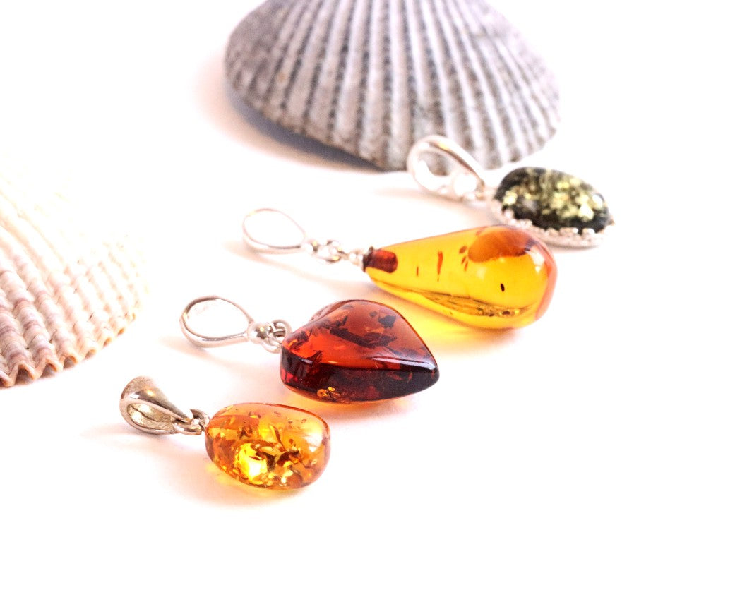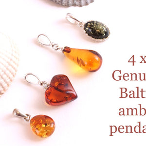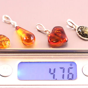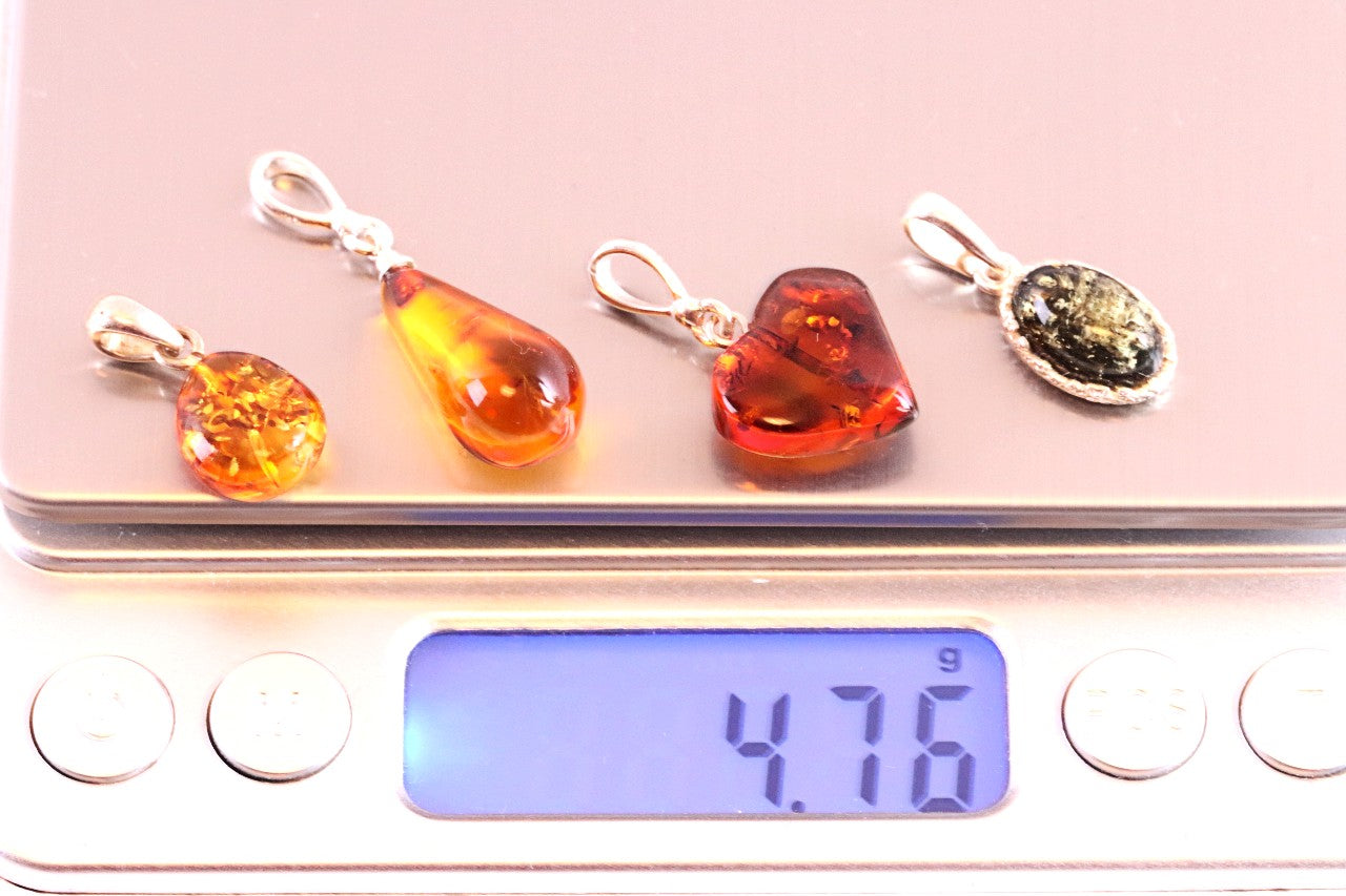 This exclusive wholesale bundle includes four beautifully handcrafted Baltic amber pendants, each featuring a smooth shape and set on elegant 925 sterling silver bails.