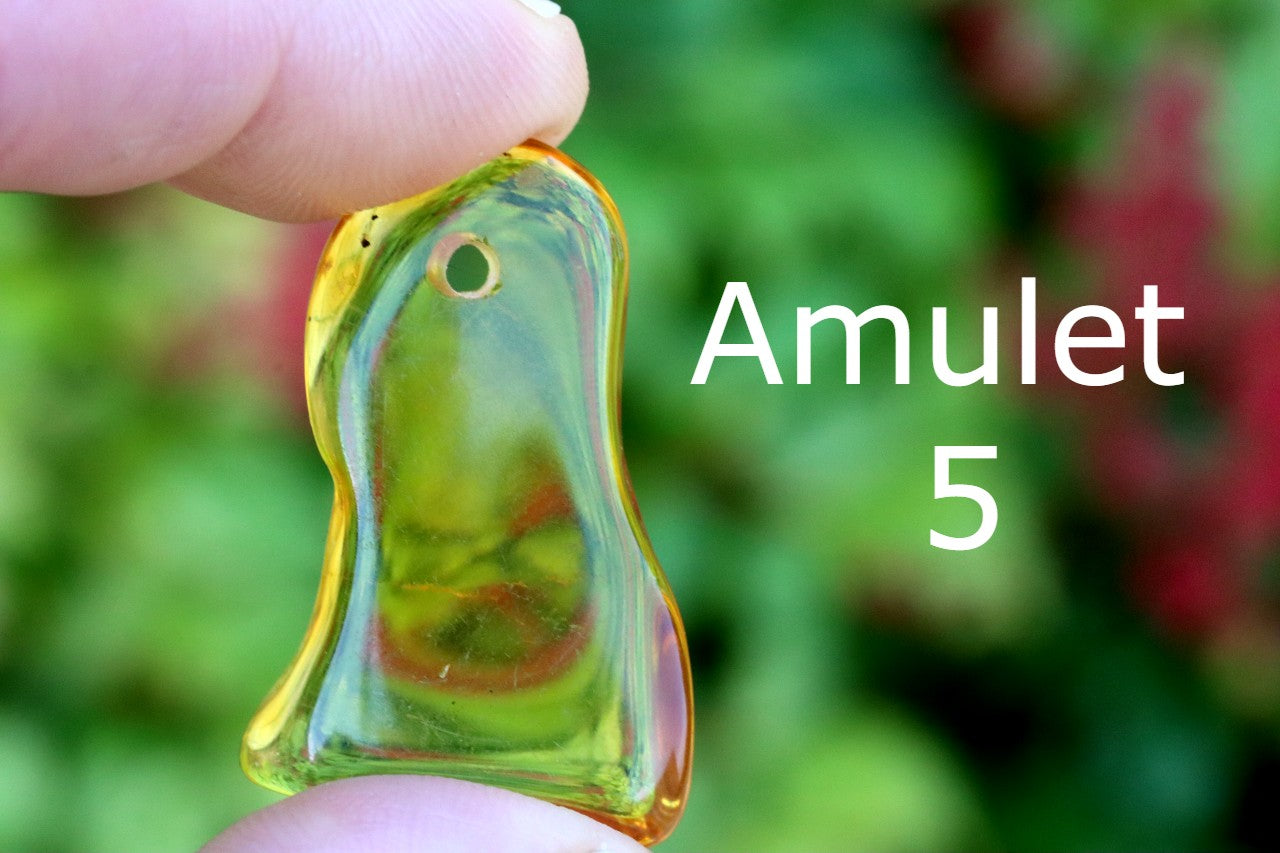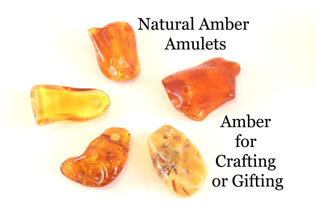 Take advantage of this exclusive wholesale offer: a set of 5 natural Baltic amber amulet pendants, perfect for jewelry making, crafting, or thoughtful gifts. Each pendant features authentic, Baltic amber, known for its warm glow and organic beauty.
