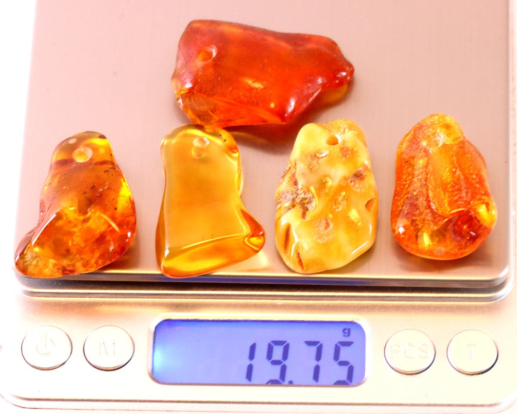 Wholesale Lot – 5 Natural Baltic Amber Amulet Pendants