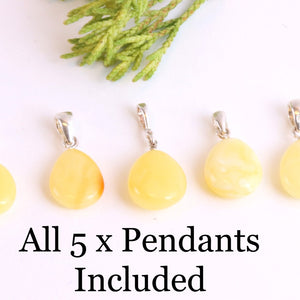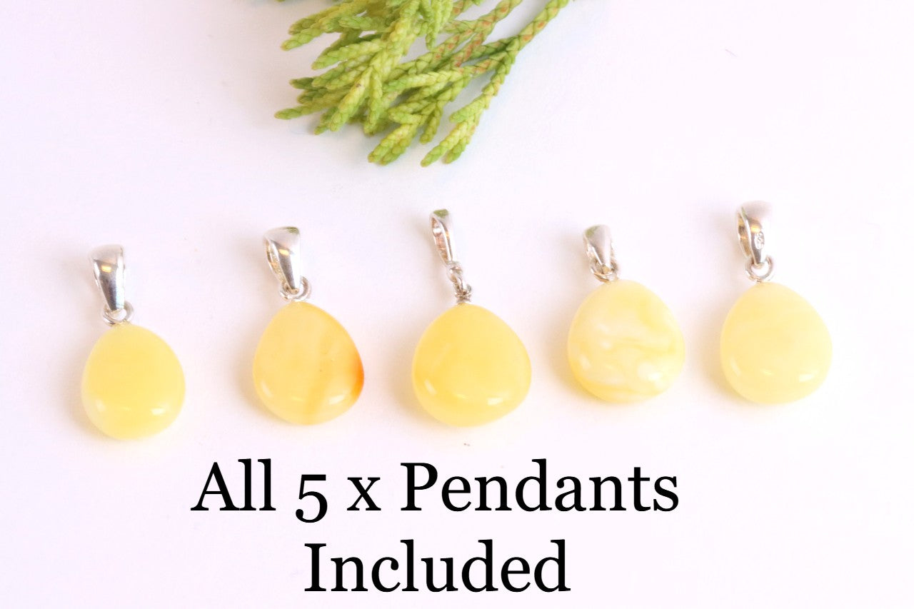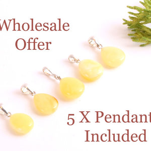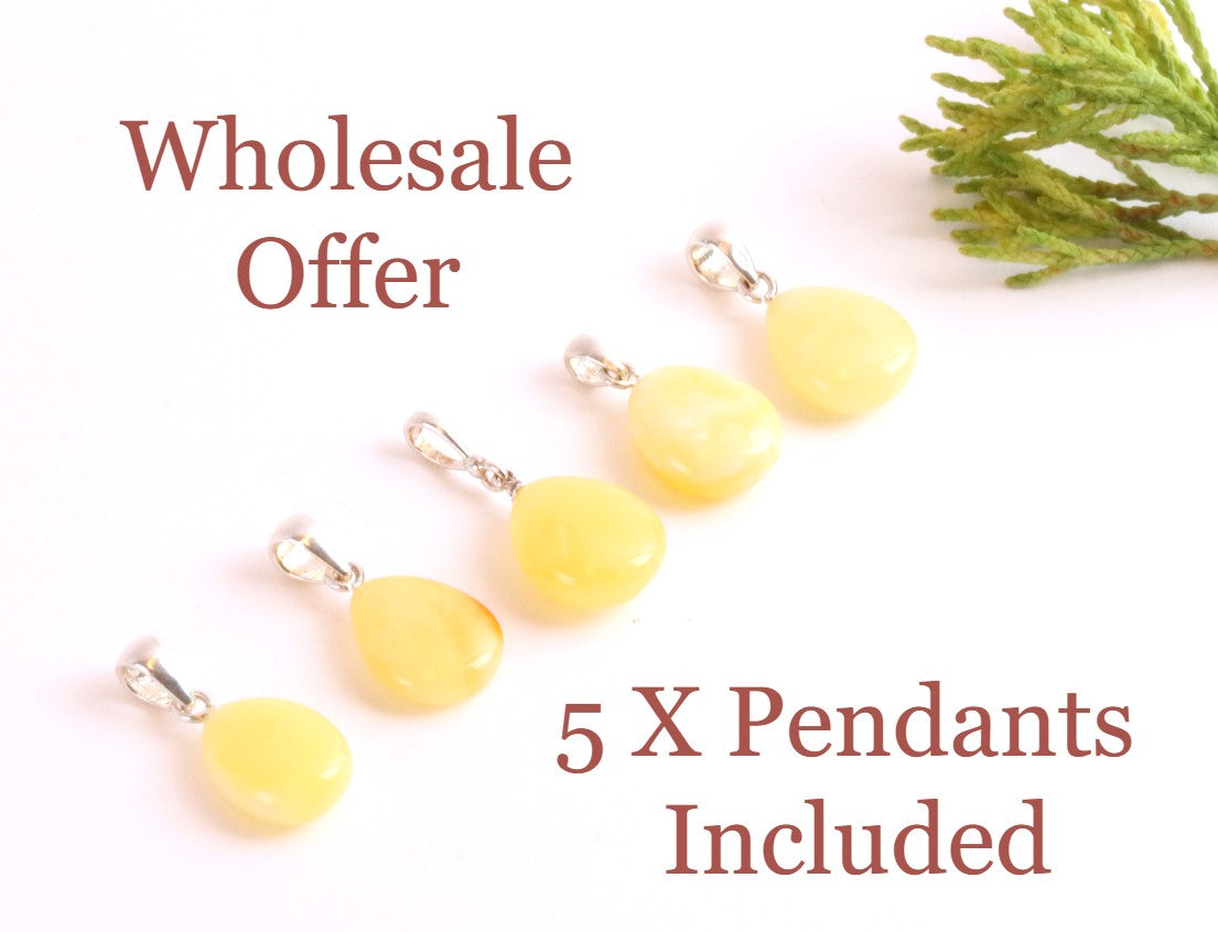 Looking for affordable Amber Gems? Look no further! Our wholesale offer includes 5 White Amber Pendants, perfect for your creative project or to stock in your store. Don't miss out on this great deal! Chains and packaging available also.